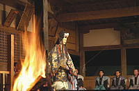 薪能「くるす桜」は、明建神社で行われる野外公演。あたりが涼しくなりヒグラシが鳴き始める頃に開演します。情緒あふれる環境での公演です。 |